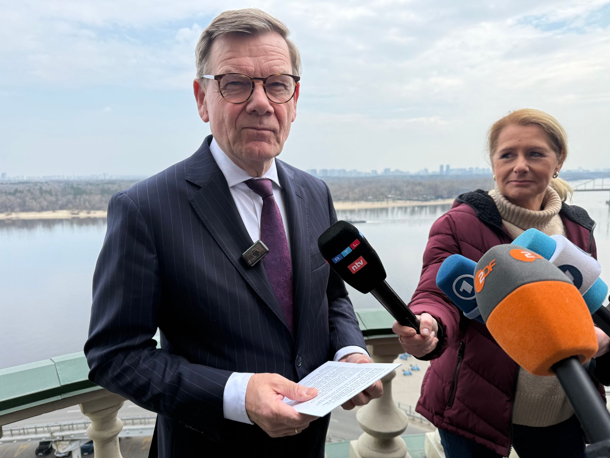 Gemeinsam mit anderen EU-Spitzenpolitikern gedenkt der deutsche Außenminister in Butscha der Opfer der russischen Gräueltaten. Vor dem Hintergrund des Iran-Kriegs macht er der Ukraine ein Versprechen.